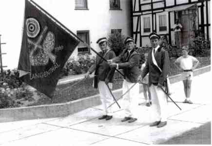 An Vereine im heutigen Sinne hat damals niemand gedacht. Die Menschen hatten zur Erhaltung ihrer existenziellen Lebensgrundlagen ganz andere Probleme. Dennoch betrachten wir das Jahr 1545 als nachweisbaren Ursprung des Schützenwesens in Langenthal und haben daher 1995 ein Jubiläumsfest zu „450 Jahre Schützenwesen“ gefeiert. Das Vereinswesen im heutigen Sinne hat sich in Nordhessen erst Anfang des 20. Jahrhunderts durchgesetzt. So ist in Langenthal z.B. im Jahre 1909 ein Turn- und Sportverein gegründet worden. In diesen Jahren wird auch erstmals ein Schützenverein gegründet worden sein. Schriftstücke darüber sind – wohl eine Folge der zwei Weltkriege – nicht mehr vorhanden. Die Erinnerung älterer Mitbürger und ein Foto vom Ende der 1920er Jahre belegen aber, dass schon viele Jahre vor dem 2. Weltkrieg in Langenthal Schützenfeste gefeiert wurden. Es gibt sogar glaubhafte Quellen, die den Schluss nahelegen, dass die Langenthaler bereits in den 1870er Jahren eine Art Heimat- oder Schützenfest gefeiert haben – mit einem Umzug, an dem auch schon die Frauen teilnahmen. Das Foto aus den 1920er Jahren belegt die Tradition, dass es schon damals einen Oberst und den Umzug einer „Frauenkompanie“ gab. Dagegen waren Schützenkönige, Königpaar und Hofstaat in Langenthal nie üblich. Man kann vermuten, dass für einen solchen Luxus in dem armen Bergdorf nie genügend Geld war. So gibt es bei dem jährlich stattfindenden Schützenfest auch heute „nur“ einen Oberst und montags jeweils einen Umzug der „Frauenkompanie“. Der dabei vollführte Brauch, dass die Frauen, die im jeweils vorhergehenden Jahr geheiratet haben, ein Bändchen mit ihrem Mädchennamen, ihrem neuen Namen und dem Datum der Hochzeit an der Frauenfahne anbringen, reicht ebenfalls bis in die Zeit vor dem 2. Weltkrieg zurück. Im Brautkleid nehmen sie allerdings „erst“ seit 1991 am Umzug teil.