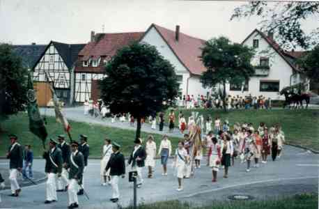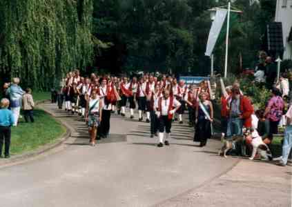 Außerdem ist erwähnenswert, dass das Schützenfest anfangs auch als „Kirschfest“ bekannt war. Das mit Kirschen immer reich gesegnete Dorf wollte den Abschluss der jährlichen Ernte gebührend feiern – das erklärt, warum das Fest schon immer Ende Juli stattgefunden hat. Zu diesem Zeitpunkt war die Kirschenernte nämlich in der Regel eingebracht.